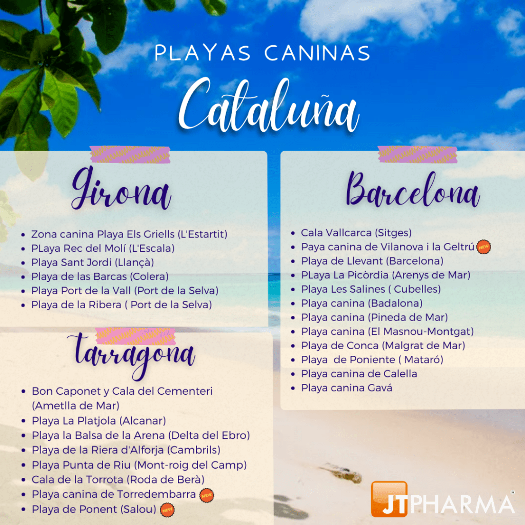Os dejamos unas imágenes por comunidades con el resumen de las playas que admiten perros, cortesía de JT pharma.