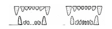 Los incisivos jóvenes tienen tres pequeños picos en su borde, parecidos a una flor. Esta forma se llama “Flor de Lis” y se va borrando con el desgaste.